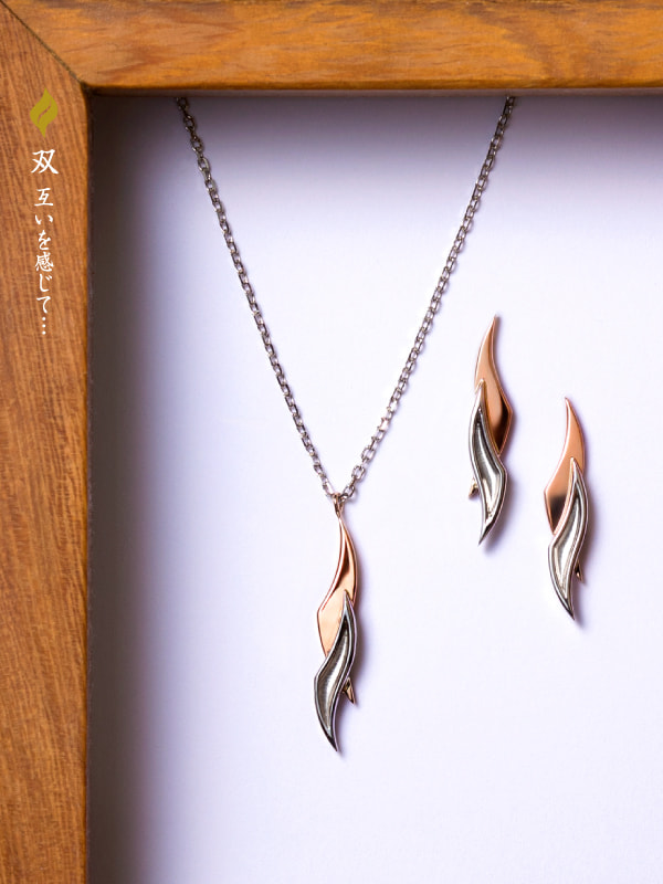 お二人:恋人や夫婦が寄り添う様を顕すペンダントとピアスジュエリーです。
