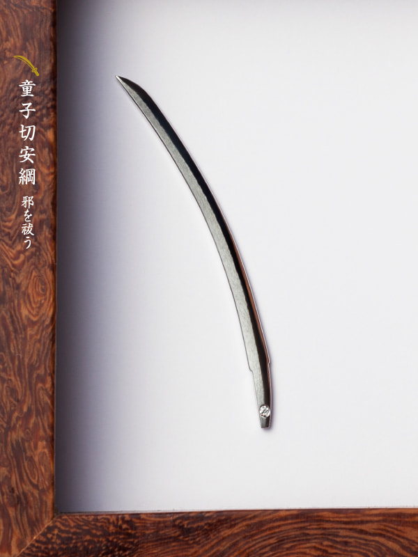 伯耆安綱の最高傑作とされる天下五剣の一振:童子切安綱を模写したタイニーピンです。